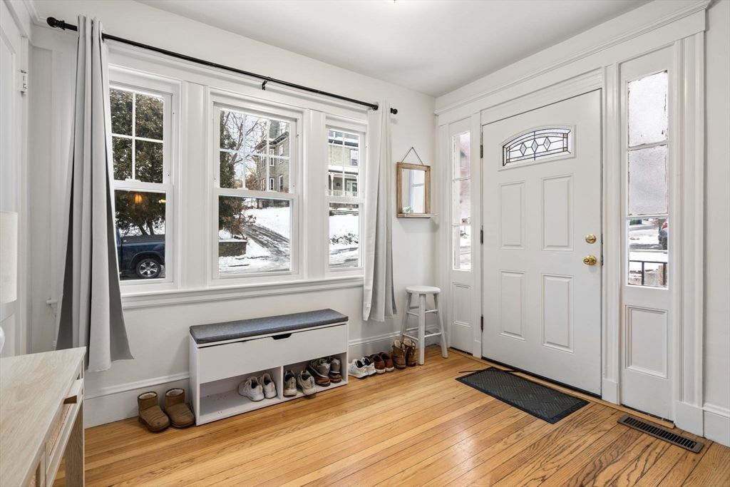 Beautifully updated two bedroom residence featuring a direct access open layout, defined dining area, expansive window lines, updated kitchen/bath, private three season porch, tall ceilings, central air, and hardwood flooring throughout. Situated within a handsome two family home offering one designated garage parking space, private basement laundry and storage. The home is ideally situated within Newton Corner with close proximity to I-90, express bus, local parks, cafes and restaurants.