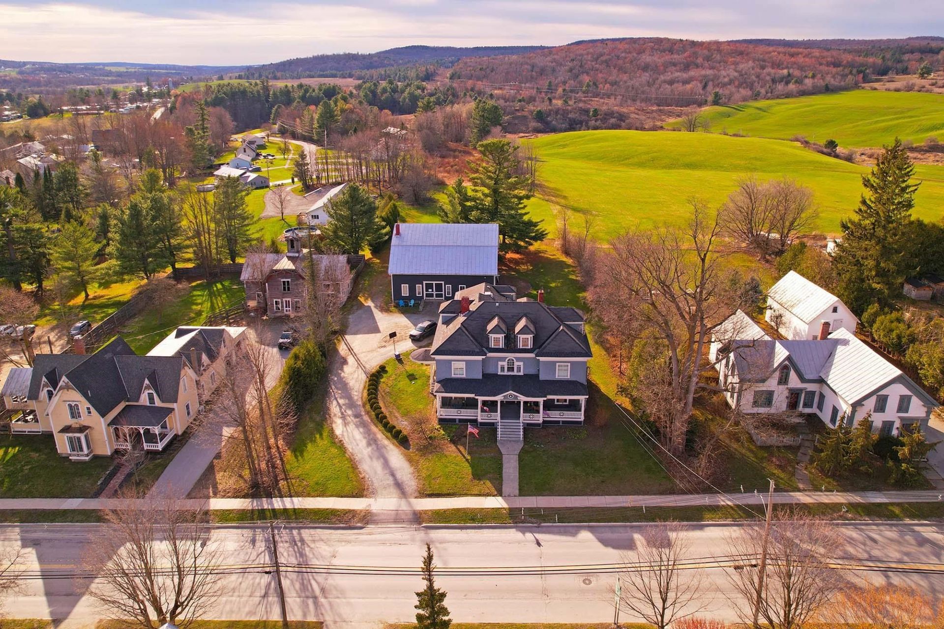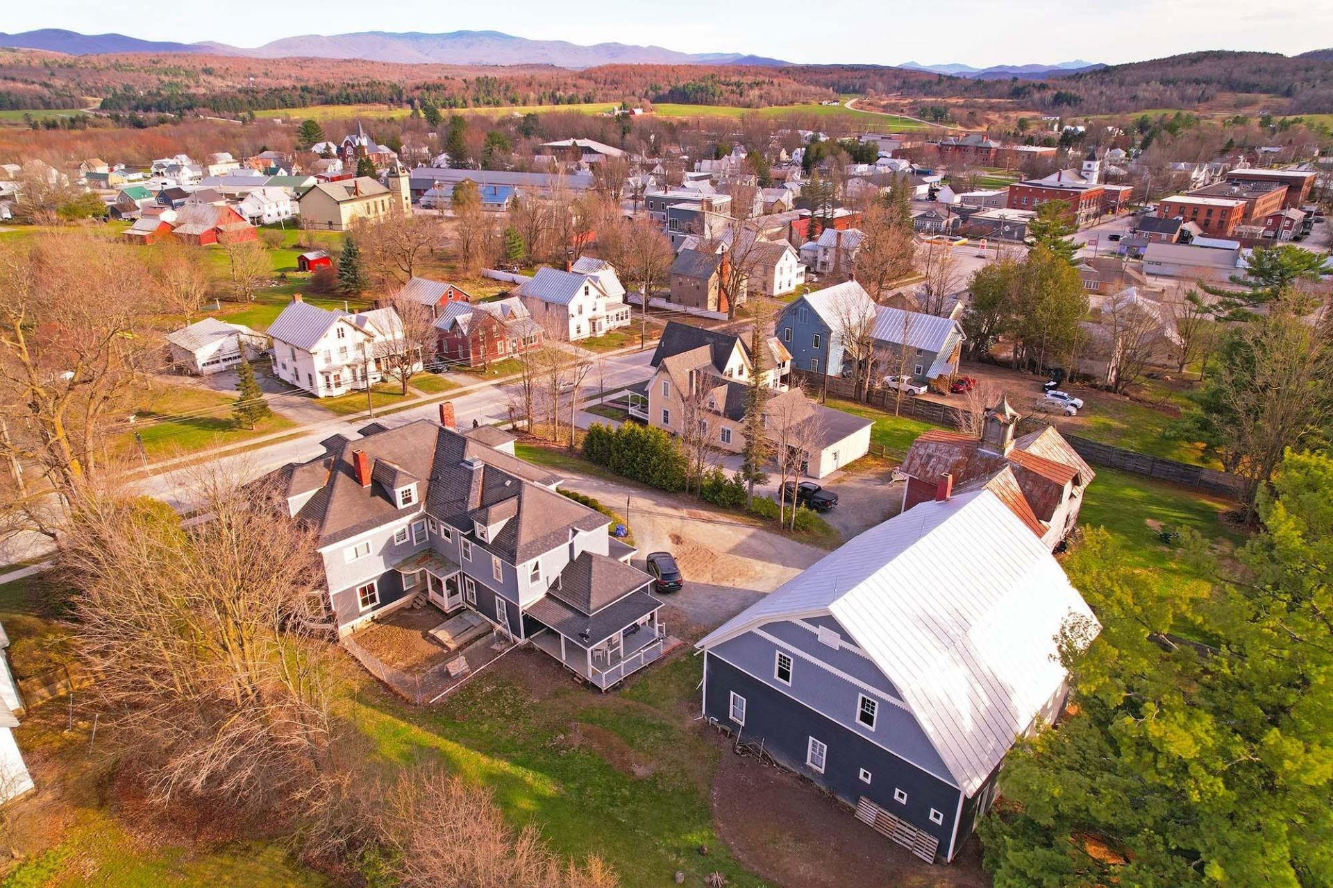 Remarkable 9 bed, 8 bath 3-story mansion with 6,885 Sqft sits on 4.5 acres in a central downtown location where minimum lot size is 1/4 acre. Historic home offers not only space and privacy, but also development potential. The impressive property enjoys broad mountain and countryside views while remaining walking distance to shops, restaurants, and services. Exquisite Edwardian-era porch beckons you in, where preserved period features are impeccably maintained. Hardwood flooring, elegant wood trim, pocket doors, stained glass accents, custom built-ins, and two fireplaces create inviting gathering spaces throughout. Expansive kitchen is well-suited for cooking and entertaining, complete with an Aga range, hardwood cabinets, stainless appliances, soapstone countertops, and direct access to a generous butler's pantry wet bar with copper sink, adjoining the formal dining room. 1st floor bedroom, office, and handicap bath offer convenience. Several bedroom suites include spacious closets and private baths, and the third level features two additional sleeping rooms, bonus room, walk-in closet, and bathroom with tile shower, offering flexible living arrangements for a variety of needs. Formerly known as "The 1906 House," the property operated as a successful bed and breakfast, hosting special events and weddings. The grounds include established perennial gardens, a 2,496 SqFt 2-story carriage barn with stalls and workspace, and open meadows that may lend themselves to equestrian pursuits and farming endeavors. Outdoor recreation opportunities are abundant nearby- including rec trails, kayaking in the Missisquoi River, and easy access to Lake Carmi State Park and Lake Champlain for boating and fishing adventures. Full basement has plenty of room to tinker and has both an egress to the side yard and interior stairway. Newer heating system. This grandiose New England estate is located 20 min. to St. Albans & Jay Peak Resort, 1-hr to Burlington, & 1.5 hrs to Montreal, Canada.
